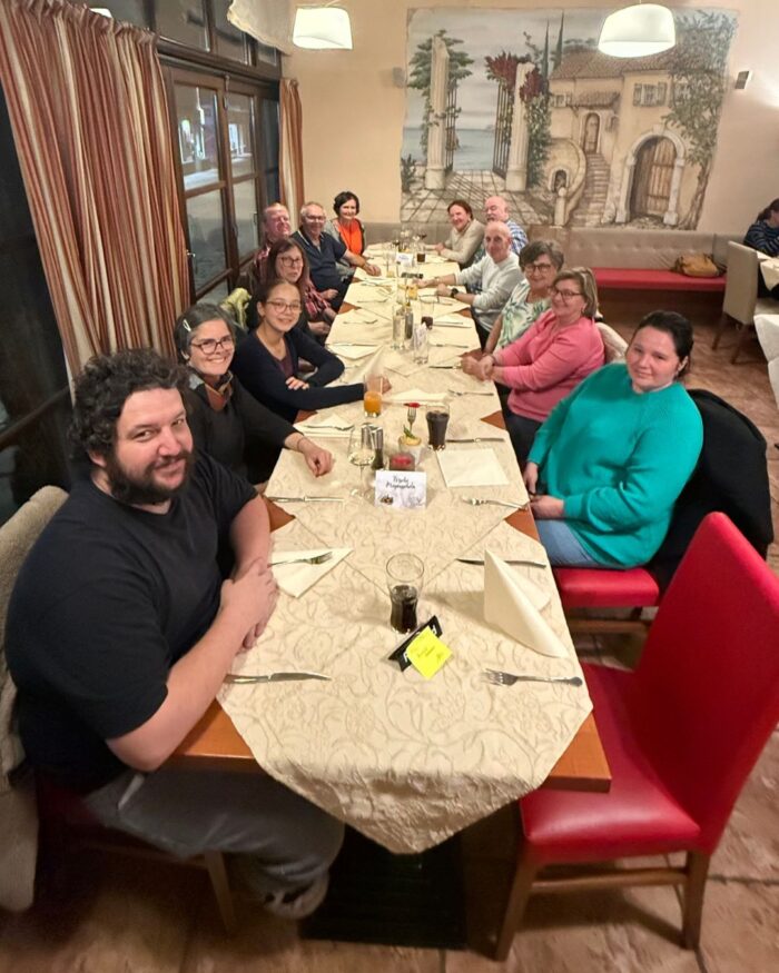 Nachdem an diesem Tag alleine fast 100 Reparaturen anstanden, saßen die freiwilligen Expertinnen und Experten noch ein wenig zusammen und ließen es sich gut gehen!